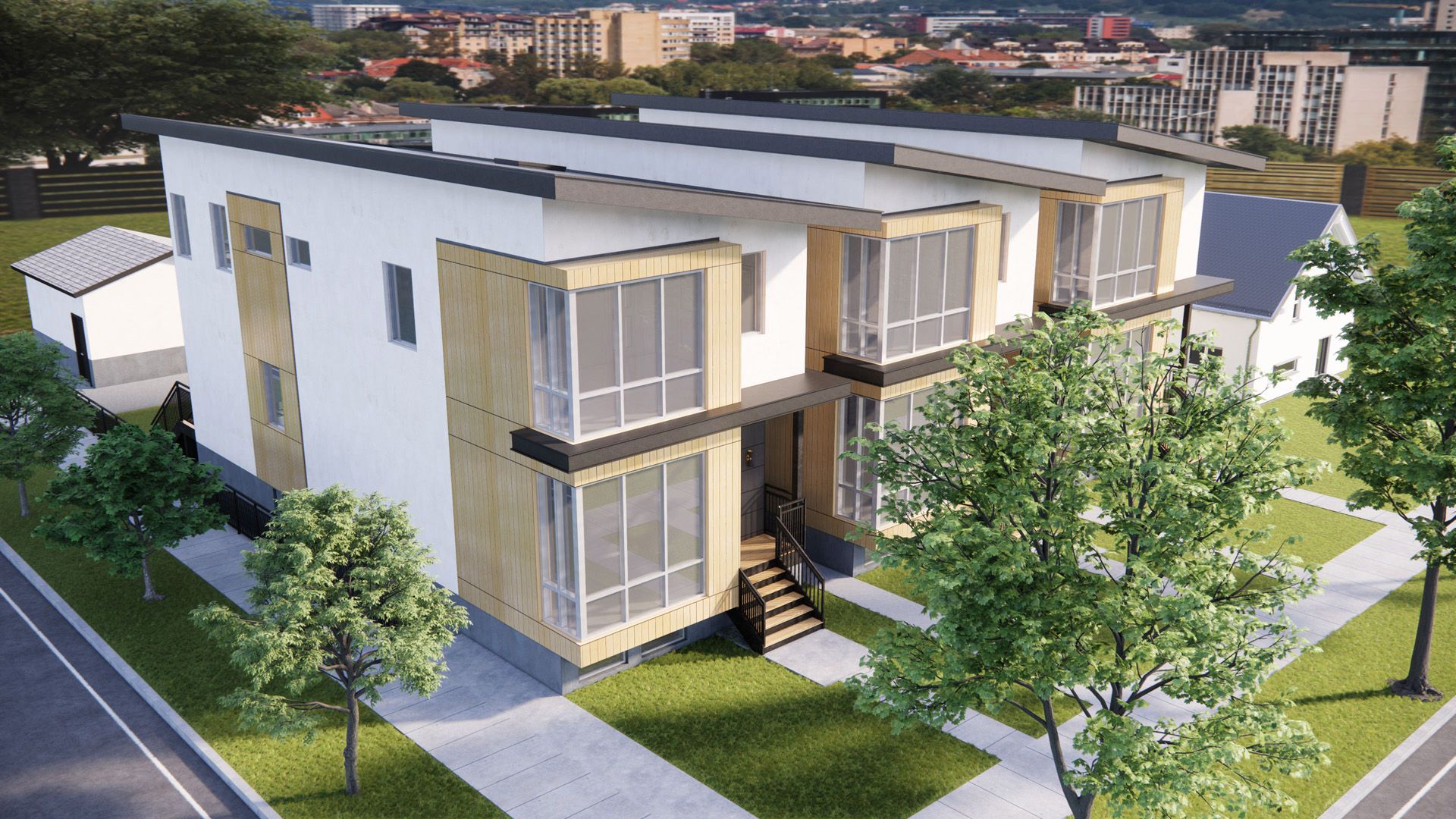 For this project, DAE Group was commissioned to design classic Chicago row homes with a contemporary twist. The footprint was limited to the size of a traditional Chicago lot, yet the client sought to infuse a more modern aesthetic into both the design and living spaces. By strategically incorporating a blend of both modern and traditional materials, DAE Group successfully merged the best elements of both styles.