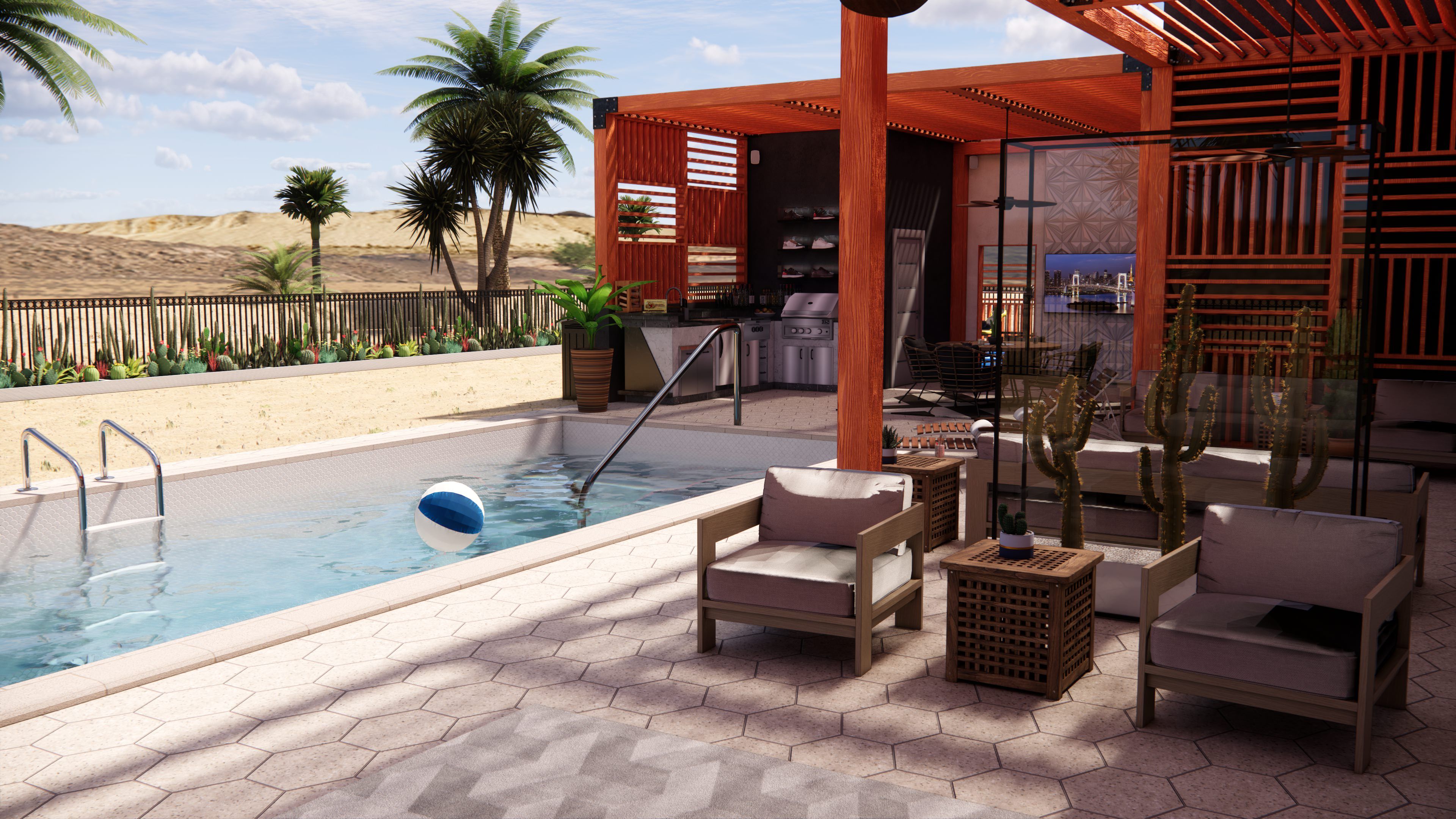 For this project, DAE Group was engaged to design an outdoor living space for a newly constructed home in Henderson, Nevada. The client was dissatisfied with the original architect’s plans for the backyard and outdoor living areas and approached our team to help bring his vision to life.