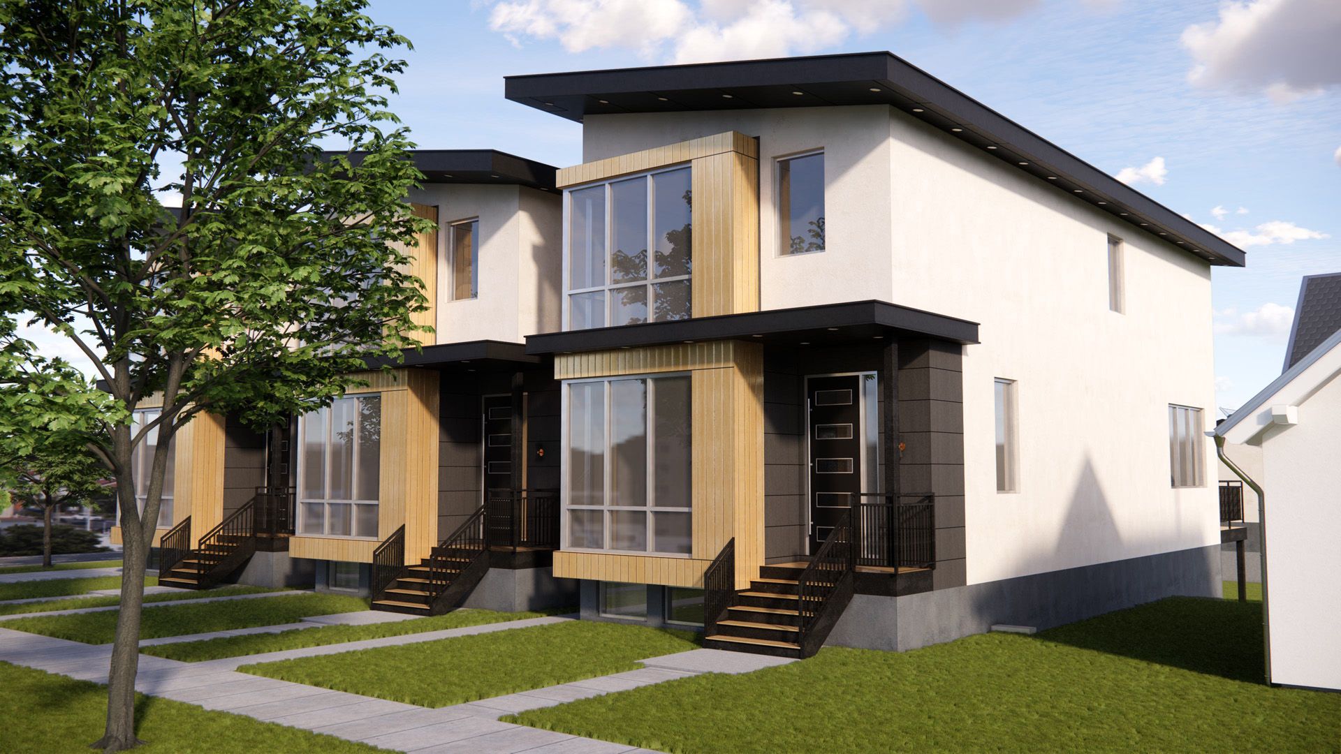 For this project, DAE Group was commissioned to design classic Chicago row homes with a contemporary twist. The footprint was limited to the size of a traditional Chicago lot, yet the client sought to infuse a more modern aesthetic into both the design and living spaces. By strategically incorporating a blend of both modern and traditional materials, DAE Group successfully merged the best elements of both styles.
