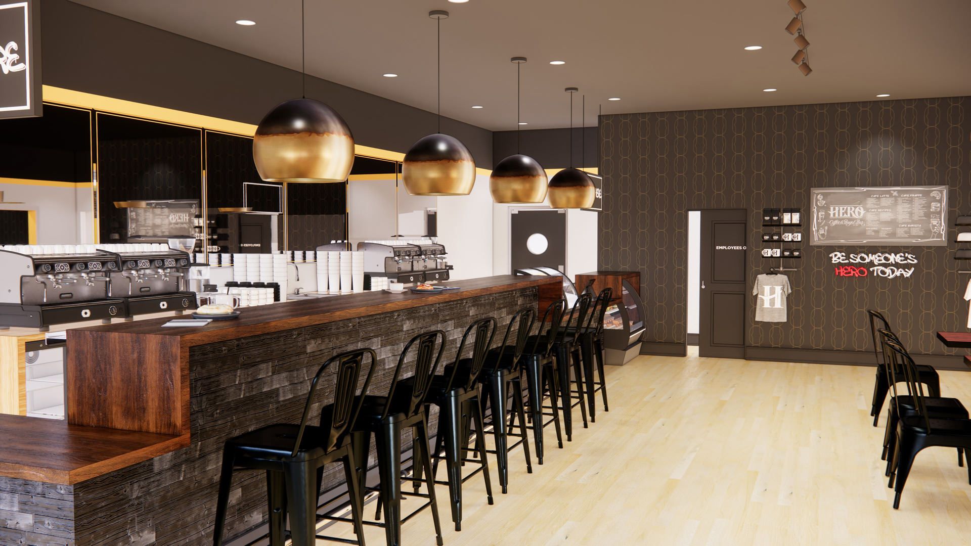 For this project, DAE was commissioned to design a flagship store for the Chicago-based brand Hero Coffee & Bagel. The client sought to transform two existing storefronts—a yoga studio and a salon—into a cohesive coffee shop and roastery. Through close collaboration with the client, DAE developed a layout that not only optimized the functionality of both the coffee shop and roastery but also created a visually striking and seamlessly integrated experience for customers.